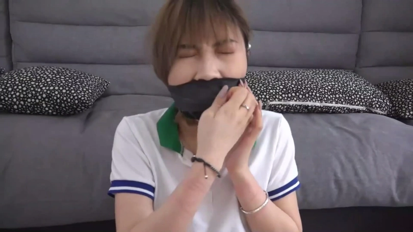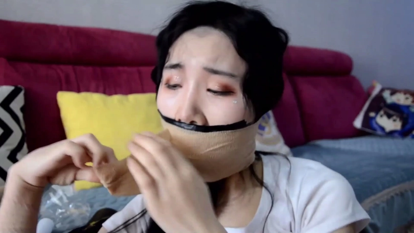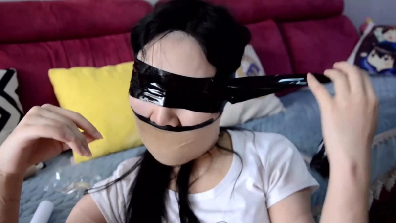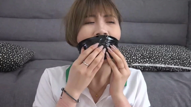 (二)与表姐打赌被骗惨遭严厉捆堵的吴晗经过长时间挣扎弄松绳结,解除套头原味臭肉色裤袜以后撕掉封眼绷带与胶带,一点点撕掉封嘴绷带胶带以及嘴外的黑色宽胶布,拽出口中两条表姐的原味内裤(一条黑色一条紫色),愤恨不平咒骂表姐竟然欺骗自己还把脏内裤塞自己嘴里,臭裤袜套自己头上,随即开始给双腿解绳子。