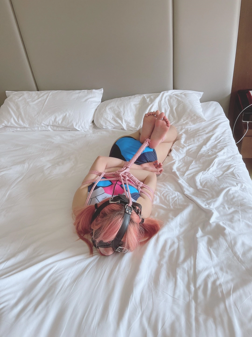 然后把给茶茶认认真真结结实实的绑了个驷马,小巧精致的玉足规规矩矩的并拢在一起,翘在背后,可爱的要命~