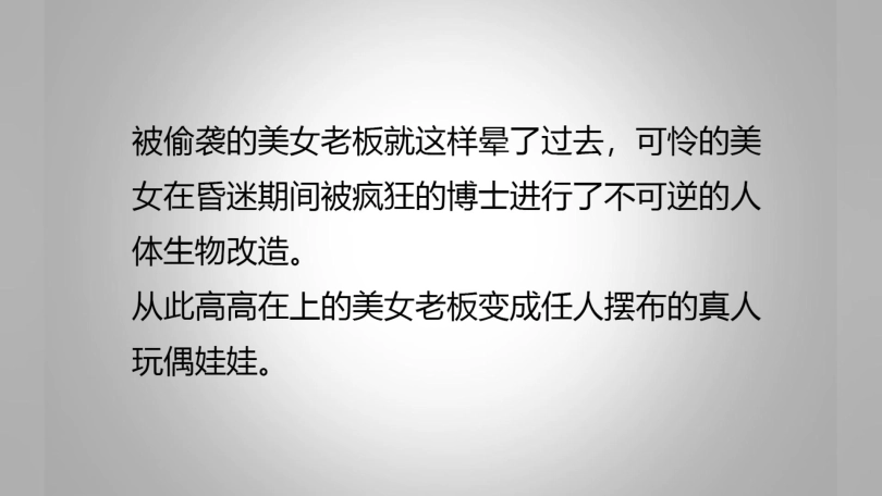 美女老板投资疯狂科学家结果被反噬,身体被改造变成玩偶娃娃,被博士肆意控制无法活动,表演精彩逼真。