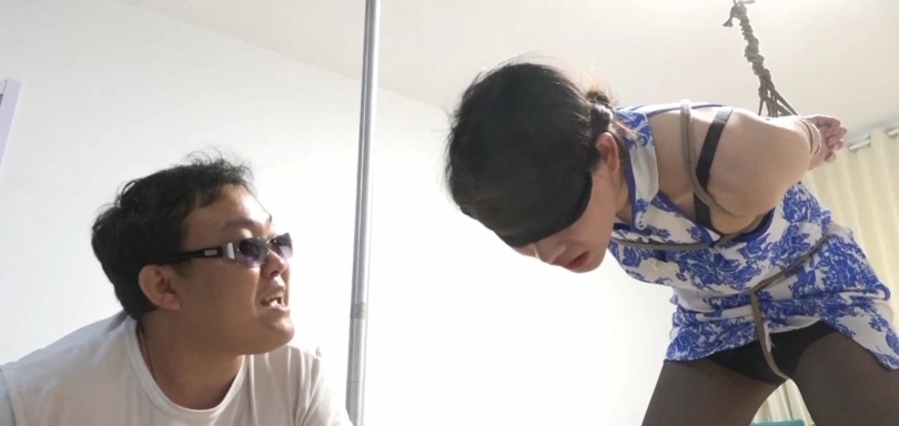 第一集柳洋也是被宾馆老板成功的绑架,宾馆老板在将她捆绑好之后也是立刻就将柳洋随身携带的包包检查了一遍。发现她随身携带的都是一些简单的衣物,并没有什么可疑的东西,只有她刚刚用来防身的手枪(上集也是说了剧本里是手枪的,结果是棍子这里再次说明一下)而且还是一个女子跑到这么偏僻的地方,便对她的身份产生了怀疑,于是决定好好的审问一下她。于是老板将柳洋绳索解开,将她带到一个架子面前。柳洋因为老板在饭菜里下的药此时还是浑身无力,只能任由宾馆老板对自己进行束缚。老板先将柳洋的双腿分开,用一根绳索分别捆在了她的脚腕处,在将多余的绳子分别捆在架子的两旁,让她的双腿不得不分开,无法合拢。在将她的双手进行直臂捆绑,将她的双手吊在了身后,让他不得不往前低着身子,高高的撅起自己的臀部,保持一种羞耻的姿势,并为她捆上了一个股绳。被紧紧捆绑起来的柳洋不停的蠕动自己的双腿,想要将自己的双腿合拢,但是被强制分开的双腿任她如何用力也无法摆脱脚腕的绳索。捆好之后老板为她戴上口球眼罩,拿来一根皮鞭,看着她那高高崛起的性感臀部,用力的抽了下去。突然感受到臀部带来的疼痛,柳洋被抽的呜呜大叫起来。经过几分钟的折磨,老板解开柳洋的口球说:“怎么样还舒服吗,不想继续受苦就老老实实的告诉我你是什么人。”柳洋被折腾的气喘吁吁的说:“我真的只是一名普通的空姐。”老板见柳洋还是嘴硬,开始扯动捆在她[X_X]的股绳。柳洋被股绳带来的疼痛大叫起来。老板:“普通的空姐会随身带这种东西吗,一个女人会来到这么偏僻的地方?”柳洋无力的说:“我真的只是一名空姐,我是度假路过这里的,我一名女子带着这个防身也很正常。”宾馆老板见她如此嘴硬也不在跟她纠缠,重新为她戴上口球说:“很正常是吧,我对你的身份没兴趣了,等会就将你给买了,看你还敢嘴硬。”于是老板便留下柳洋,出门联系买家去了~
