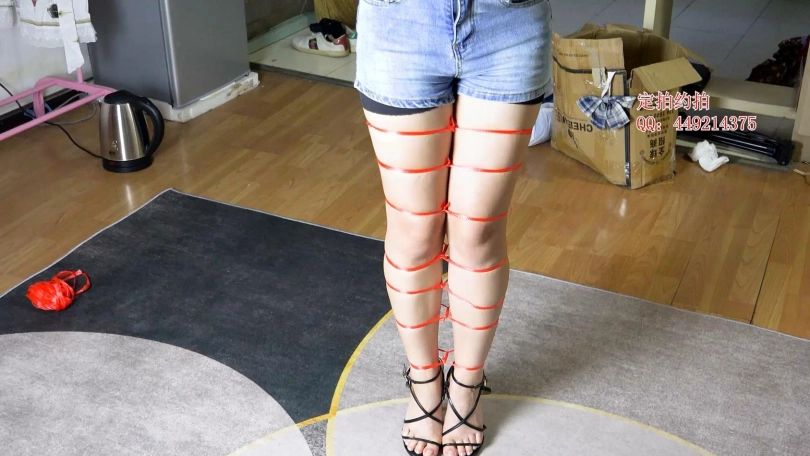 【子衿】美琦细绳勒脖五花反手绑手腕手指站立绑腿,捆绑细节