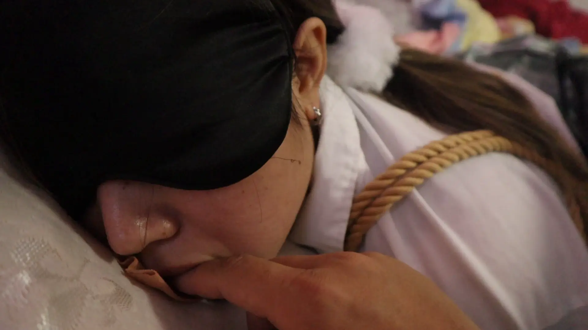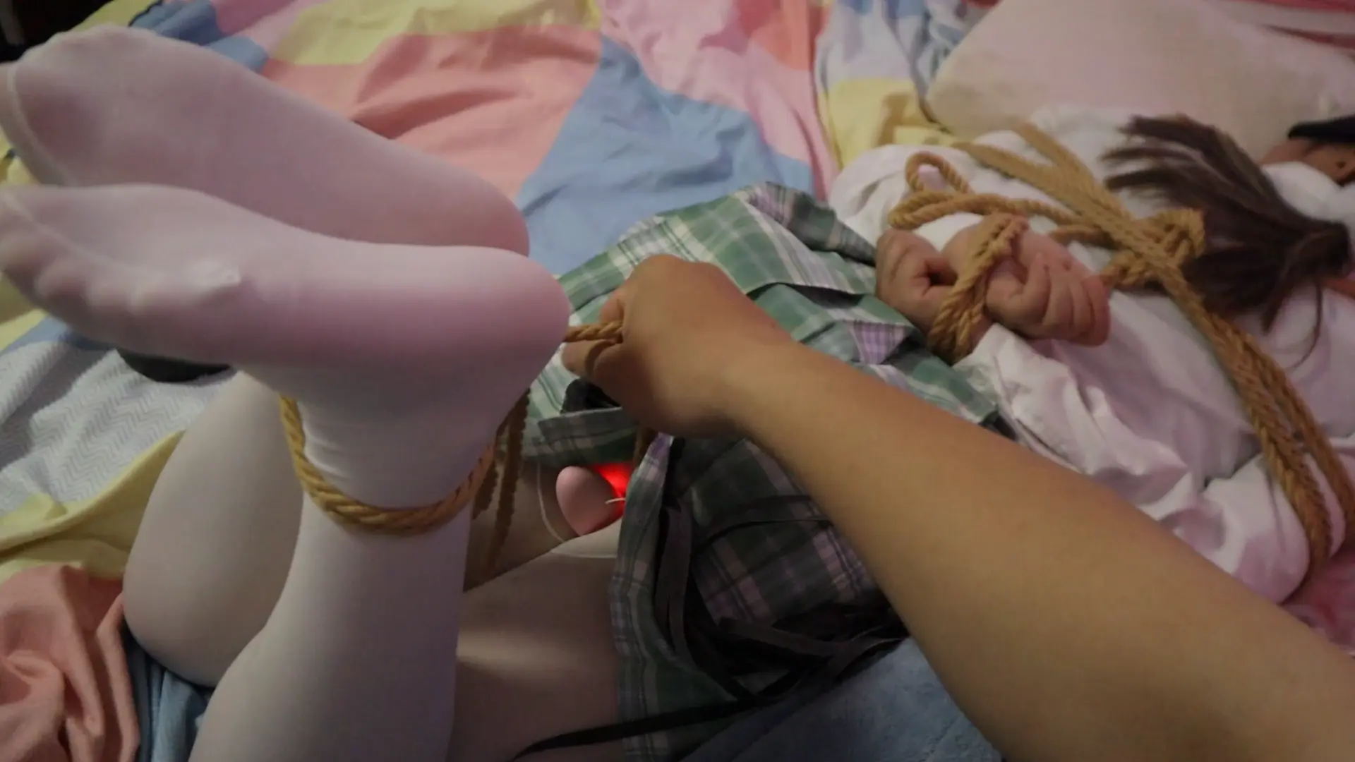 【荷仙少女】绿JK白丝少女奴,拉动股绳嗯嗯的叫,驷马绑,指令+舔+鞭打+小玩具振 股绳慢慢拉动 胶带封嘴TK挣扎,边痛苦求饶边爽的呻吟始终没停下来