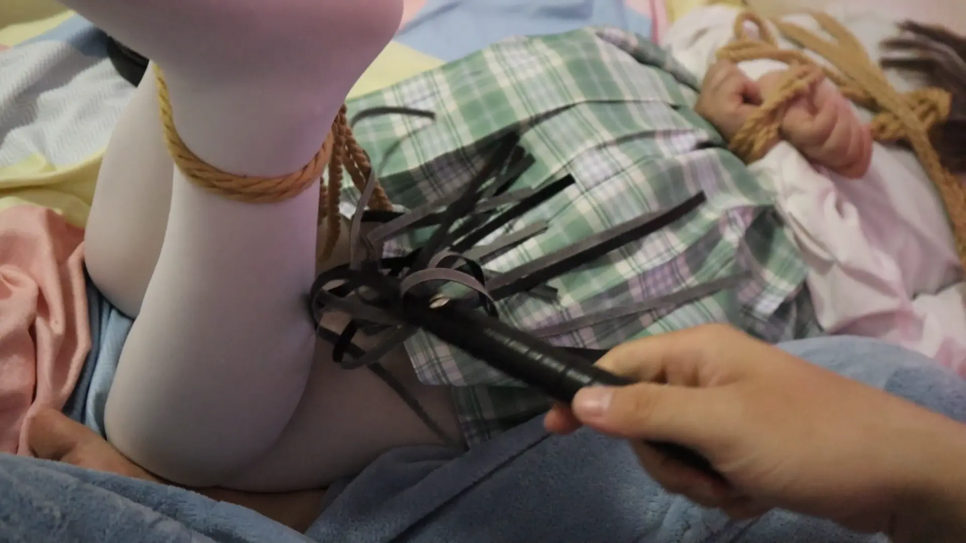 › 【荷仙少女】绿JK白丝少女奴,拉动股绳嗯嗯的叫,驷马绑,指令+舔+鞭打+小玩具振 股绳慢慢拉动 胶带封嘴TK挣扎,边痛苦求饶边爽的呻吟始终没停下来