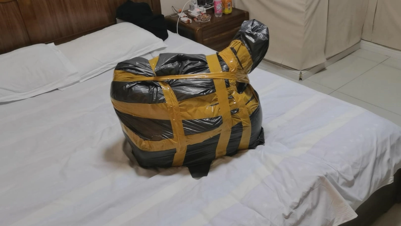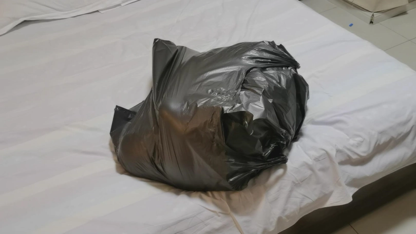 2、塑料袋包裹的不是很紧,但是很柔软也能勾勒出身形轮廓,性感的一批。