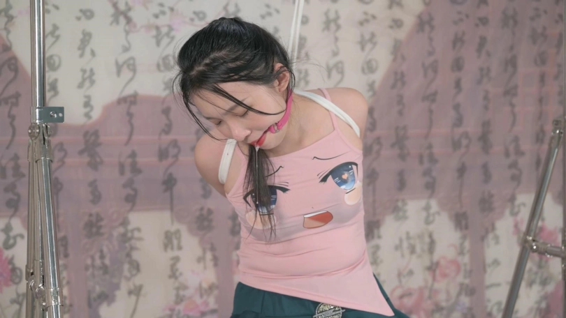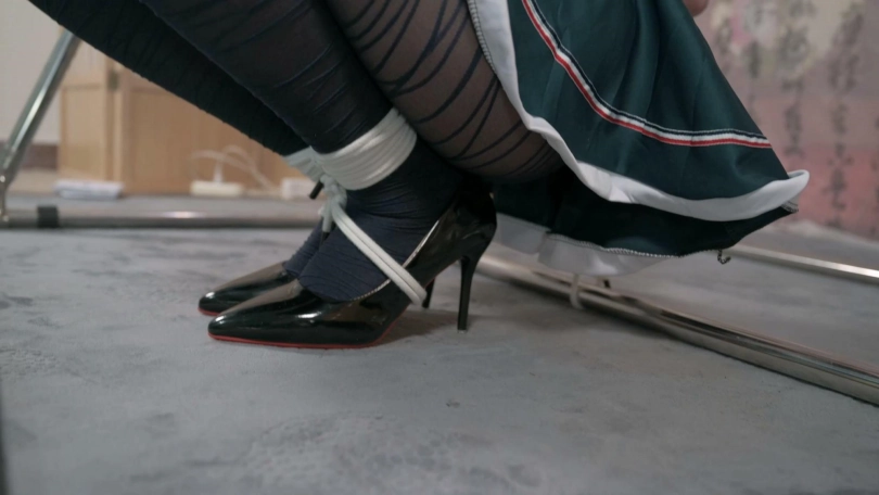 妹子穿上丝袜高跟显得格外修长,先是蹲姿直臂跨过一根横杆固定,然后TK教育,然后换坐姿,便于爱抚长腿,最后的电击让她尖叫连连。