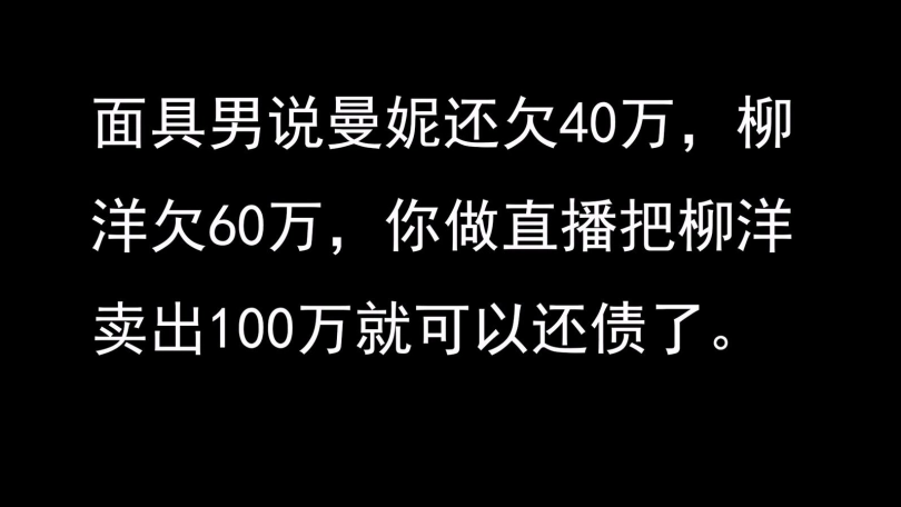 面具男说曼妮还欠40万,柳洋欠60万,你做直播把柳洋卖出100万就可以还债了。