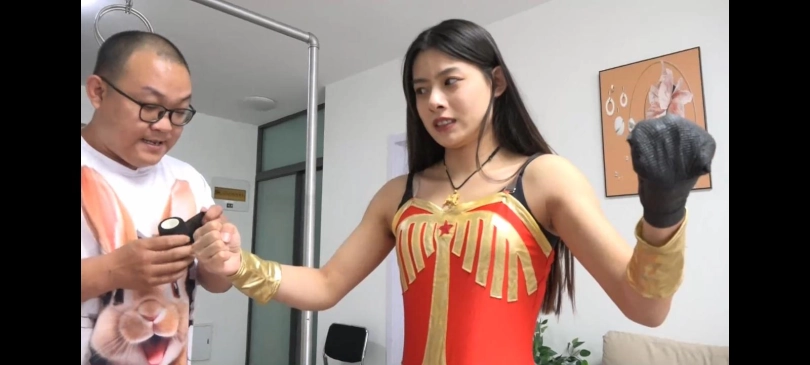 神奇女侠做任务结果被定住,坏蛋吧她绑在枷锁处打屁股,女侠享受的受着,开口器吧她绑到椅子上然后点击针扎挠痒,挠脚心折磨,女侠被折磨的死去活来,昏死过去然后女侠被绑起来在床上电击捆绑折磨,电击项圈针,玩累了坏蛋吧女侠定住,像雕塑一样。