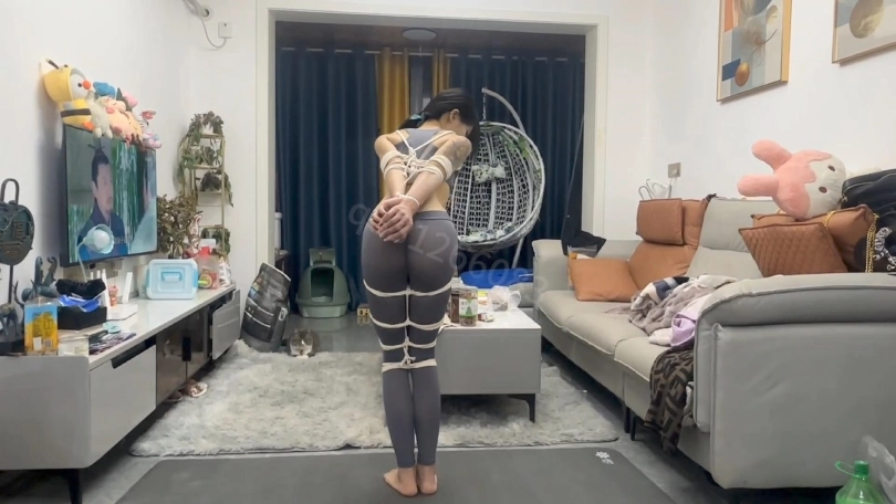 瑜伽妹子一枚,屁股是真圆,极限欧式紧缚,强高挣扎,驷马强制深喉,驷马后入,最久的的一次了,,,被捆得只能成为一只玩偶。