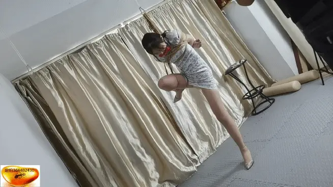 【魅影空间】笑笑旗袍片足……美女笑笑新中式旗袍紧缚片足,红红的狗骨头口塞,口水收集。绑上了笑笑才娇羞的说她的花纹小内内见光了,不管了继续吊