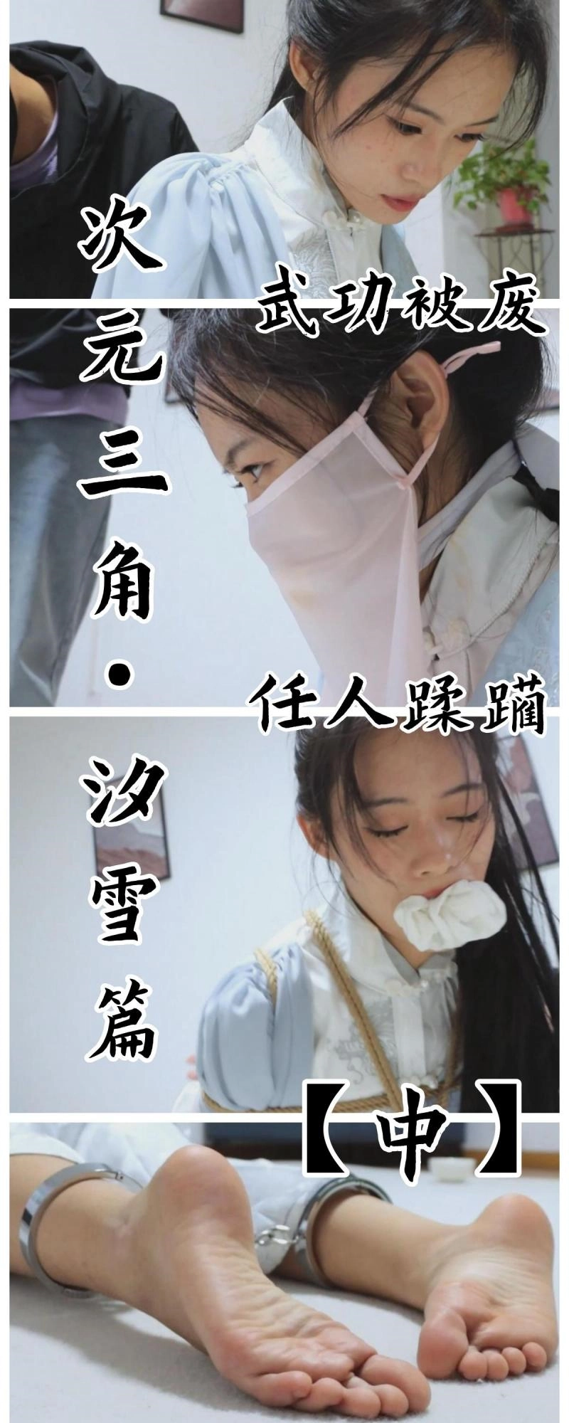 诶嘿,玄铁脚镣给女侠加上,然后把女侠的白布袜脱掉……当然,所有袜子在我这只有一个去处,那就得让女侠自己品尝品尝咯,也不知道塞着自己的原味白布袜,被各种虐足和TK的女侠还能不能好好运气抵抗毒素了呢?可别太快投降啊,不然咱也没有虐起来的乐趣不是吗?