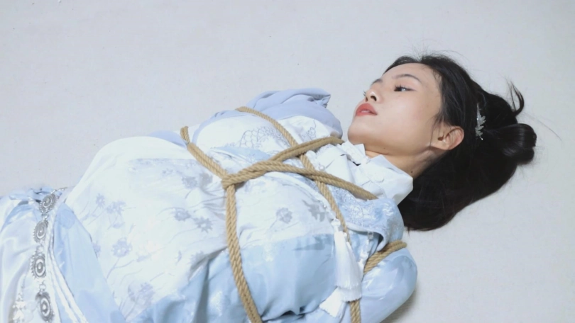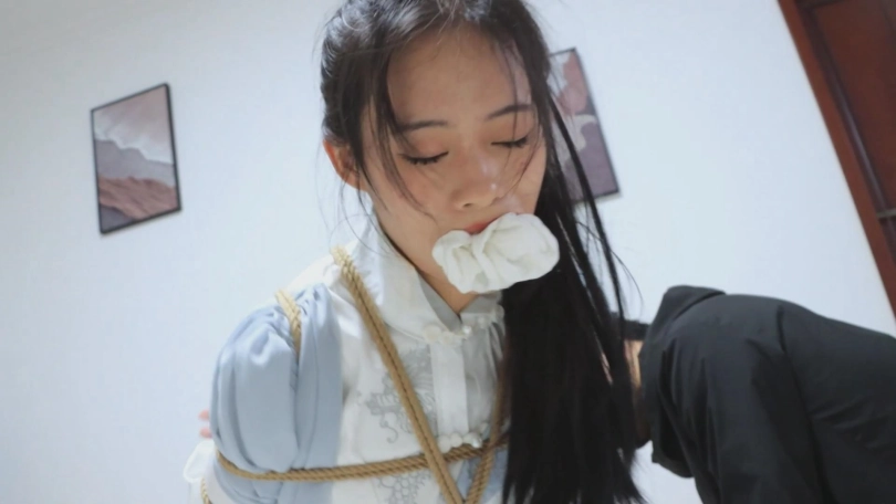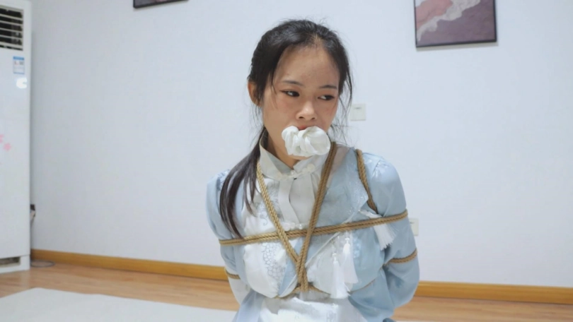 【亮点】新模特语汐女侠古装登场+被贼人暗算中毒,被东洋绳缚术绑住+依靠腿功奋力反抗,然而却被脱掉靴子,点了穴道动弹不得+被贼人用丝绸手帕堵嘴后极限驷马,如果不能挣脱的话将会武功尽失,变成废物美女。