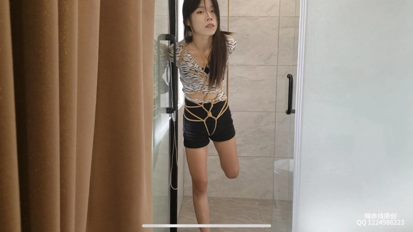 安琪又带了男朋友过来看着拍摄,太尴尬了,给她绑了个龟甲直臂,然后叫她到厕所里给她来了个单脚吊,她男朋友马上从床上蹦起来过来看着,还是挺刺激的,不知道他看到自己女朋友被别人绑成这样会不会有啥生理反应,哈哈哈!