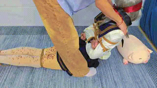 下一步就是拉紧绳子再把腰上抬,上身抬到最高度的时候,M直呼***不过变成了呜呜呜。