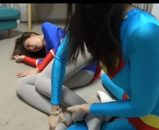 女超人妹妹自信抓捕反派,缺不敌,被打成重伤并且被反派侮辱,虐打臀部等等,绝望的妹妹认输了,得到消息的女超人姐姐前往救援,到达现场占据上风的姐姐被反派用妹妹威胁,放弃抵抗,不料反派竟然让二人互相折磨,等待两位女超人的绝望开始了