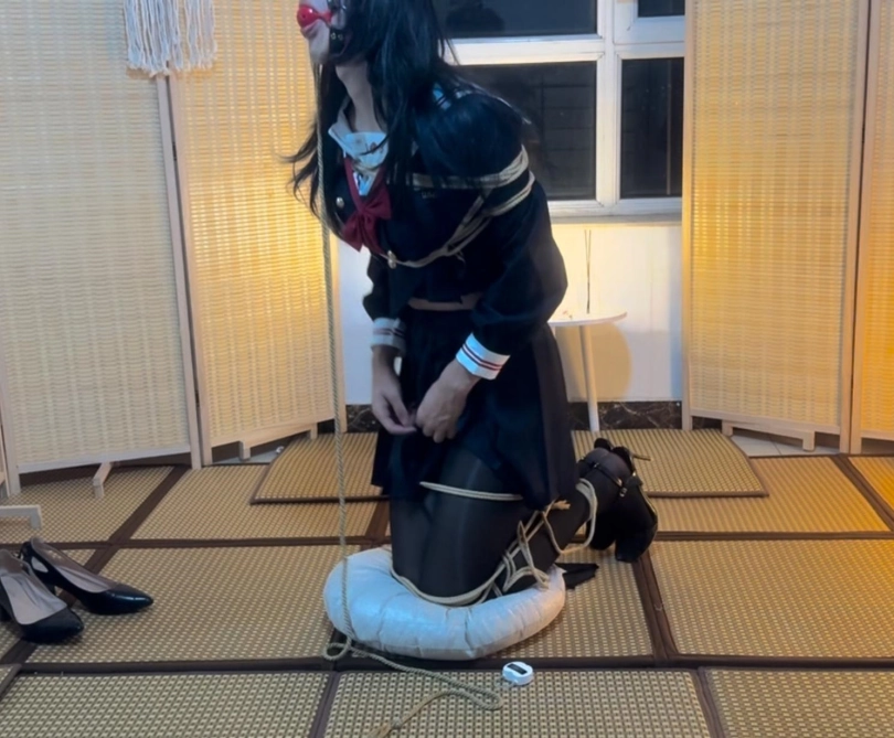 太久没自缚了操作有点呆,日式自缚刚开始绑的有点多,后面绳子竟然不太够用了,马具口球连脚的收紧环距离太大,收紧也有点问题,要被自己蠢死了!!但是竟然手差点没解开,还是摸到小刀才割开的,足以证明自缚充满了不确定性,一定要留好退路!!!