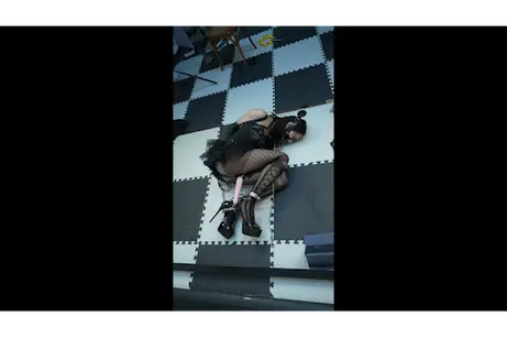 跑步机训练安排上,当然不会这么简单,头顶挂在吊环上,项圈连着前面限位,脚铐和单手套相连,小伪娘只能不停向前小步迈步,加上棒子震动刺激,没一会就香汗淋漓,坚持不住了。
