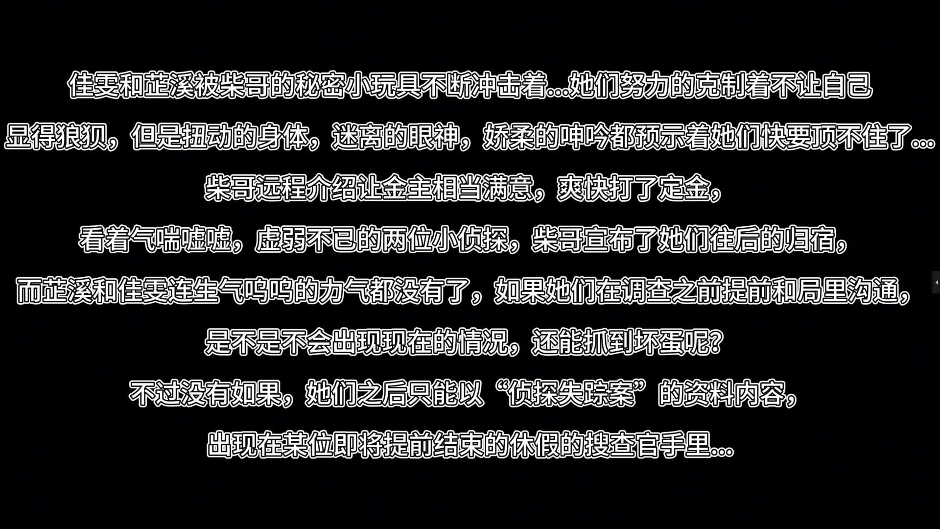看着气喘嘘嘘,虚弱不已的两位小侦探,柴哥宣布了她们往后的归宿,
