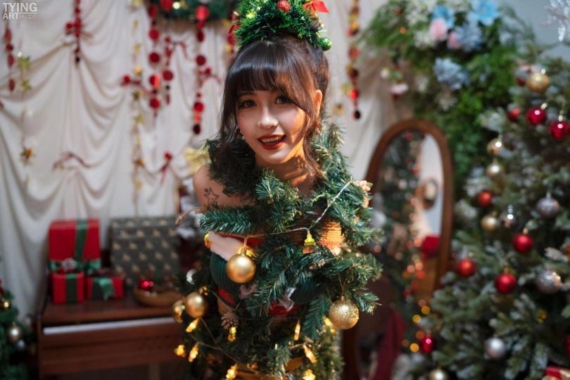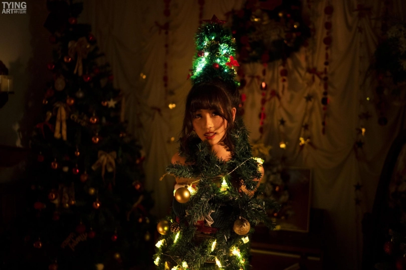 模特Mmi,全身紧缚,加上道具修饰,成为一颗闪闪发光的圣诞树。