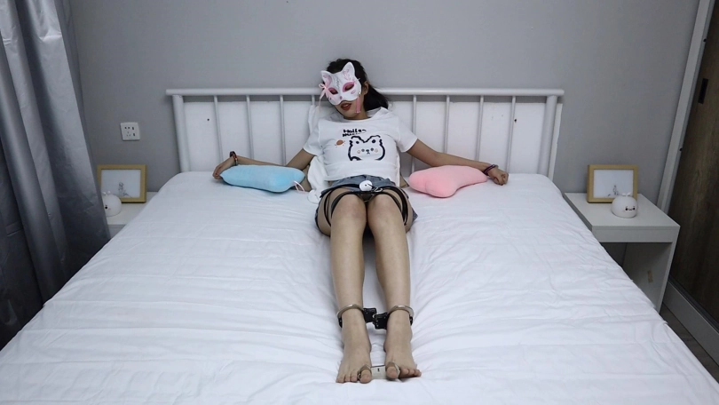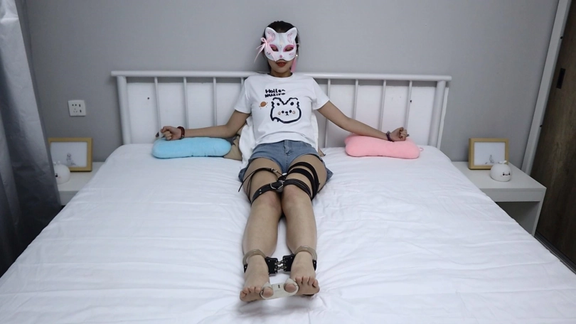 【趾间艺束】超模叶子首次棒棒强制GC 镣铐绑带全固定 捆在床上ZW 手铐脚铐脚趾铐