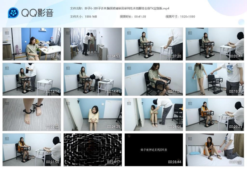 【趾间艺束】黑寡妇叶子 杀夫骗保被捕 审讯指认审判处决 挠脚挠全身TK 手铐脚铐脚趾铐