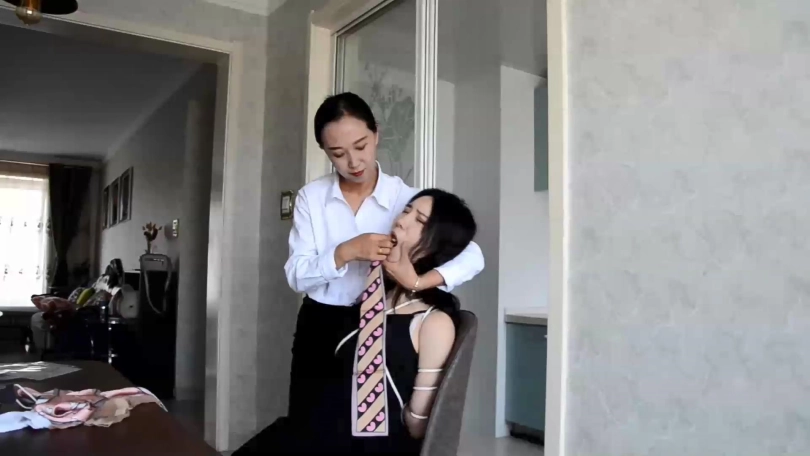 看点:多次塞嘴(共七次、一双棉袜、六只肉色短丝袜、三条丝巾依次塞、一双黑色连裤丝袜、一条黑色男士三角内裤),塞嘴过程特写(塞得很慢,喜欢塞嘴的同好不要错过)、女捆堵女折磨、挠脚心TK、高跟鞋捂鼻子、胶布绷带缠绕封嘴封眼。