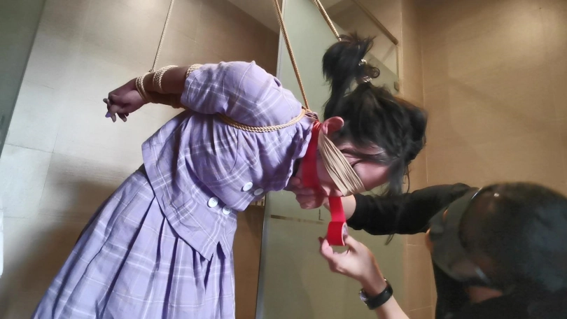 【JS】琳洛 后手吊 思袜堵嘴蒙眼 胶带封嘴 抽打