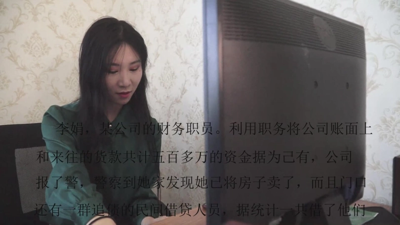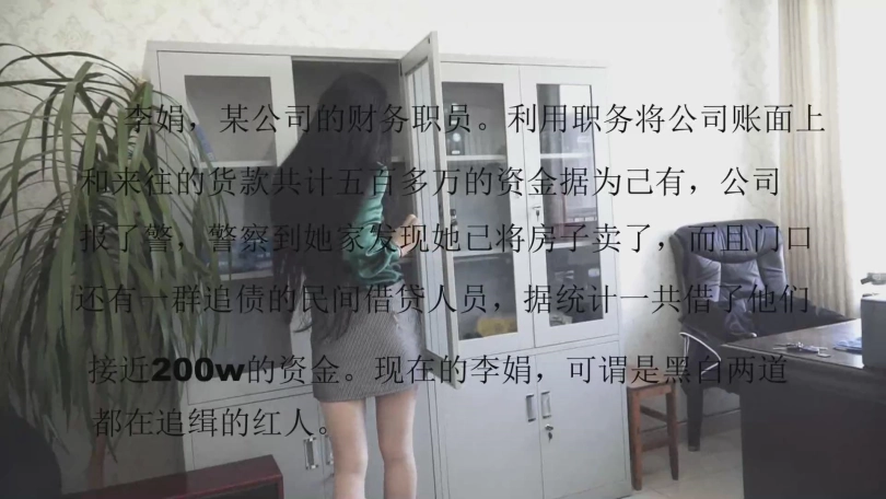 李娟,某公司的财务职员。利用职务将公司账面上和来往的货款共计五百多万的资金据为已有,公司报了警,警察到她家发现她已经将房子卖了,而且门口还有一群追债的民间借贷人员,据统计一共借了他们接近200W的资金。现在的李娟可谓是黑白两道都在追缉的红人。