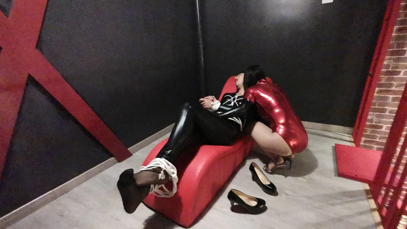 【JS】琳洛 DM-双女漆皮衣 刑房 女性统治 龟甲 情趣躺椅 DD刺激