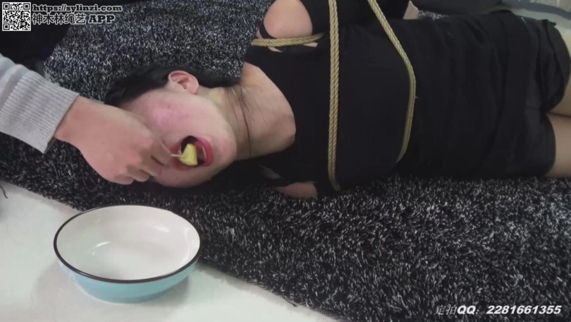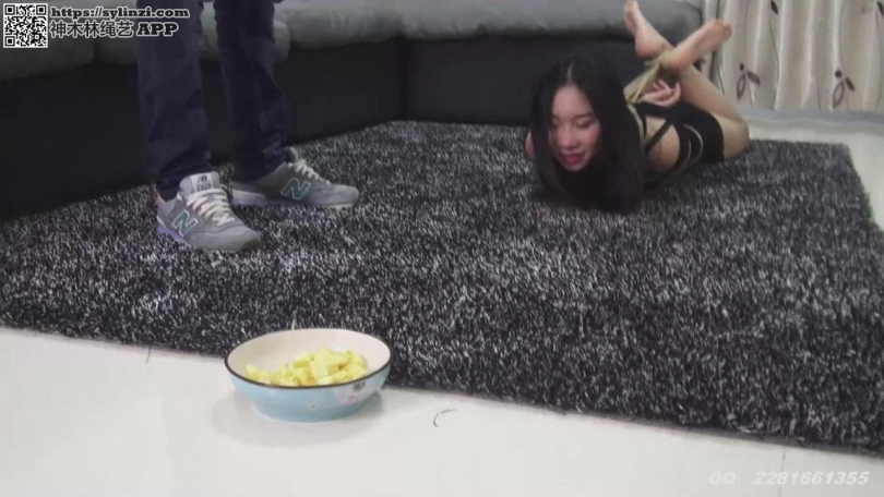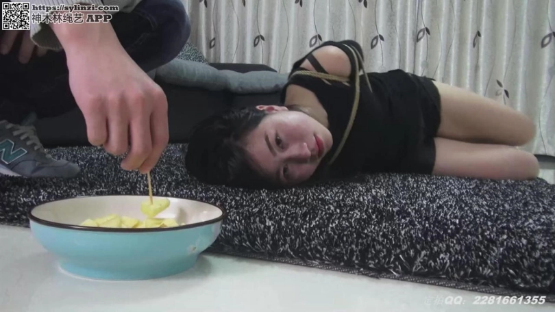 小俩口吃完晚饭,老婆要老公喂自己吃水果,但老公要把老婆捆起来才肯喂,于是。。。。。最后老婆终于把一盘苹果全部吃完了,老公说时候不早了,我先去睡了,而老婆就被捆在客厅的地摊上。。。。。。