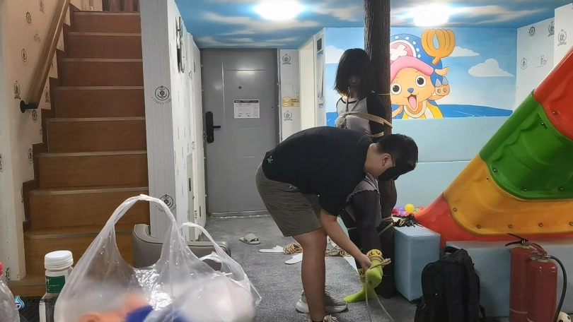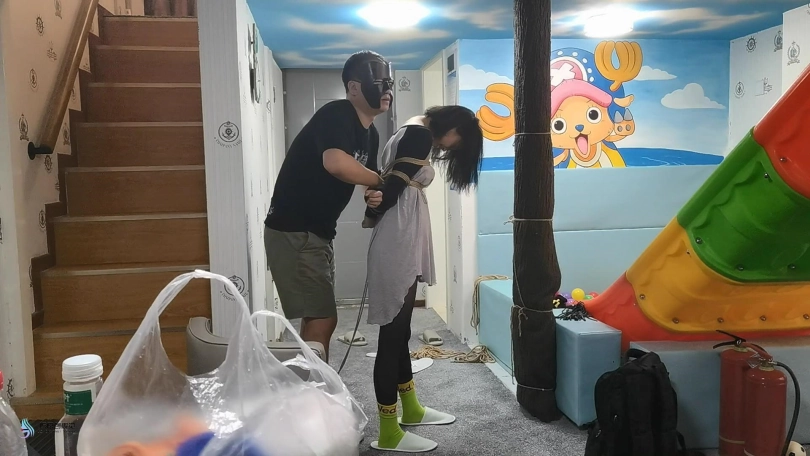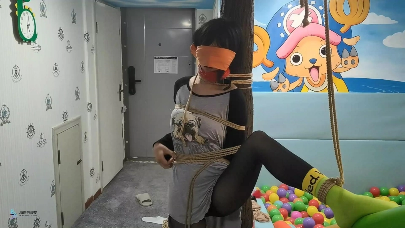 【JS】【激辣】黑丝棉袜单腿吊丝袜堵嘴胶带蒙眼抚摸TK