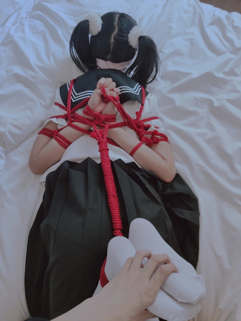 本期准备了六种生活中常见的TK工具:手指、梳子、牙刷、电动牙刷、电动牙刷马达、电动剃须刀的电动旋钮。我们会将穿着jk制服和白丝的双马尾少女用后手观音+驷马的方式紧缚起来,然后依次测试以上各种挠痒道具的效果: