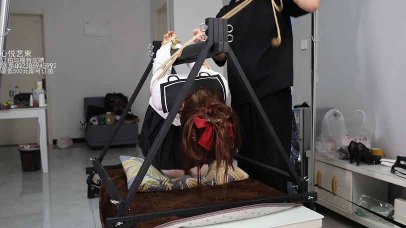白丝JK小姐姐被双手被绑在横杆上,双脚并拢吊起,全身重量都用膝盖承受,罚跪1小时,旁边还有怪蜀黍不停骚扰,玩弄小脚,脚丫不得不说好白嫩啊。裸足白丝并一起,我觉得我又行了。