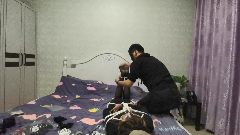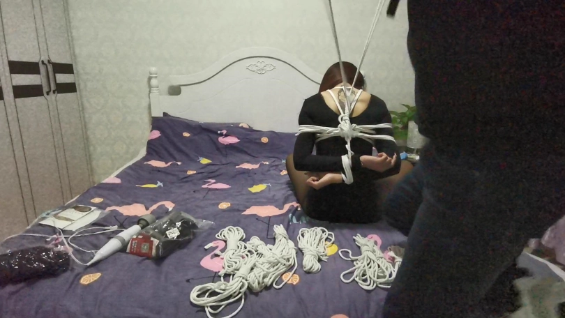 瑾萱穿着黑色丝袜和练功夫还是很有型的。用百米长的绳子将她全身紧紧的捆绑成驷马,脚趾也不放过。嘴里塞着丝袜,医用胶布封嘴防止她吐出来。在给她戴上口超限制呼吸。丝袜套住她的头,白色的口罩在丝袜头套里若隐若现很有感觉。[不可描述]棒刺激着她的下面,没过多久瑾萱就受不了求饶了。