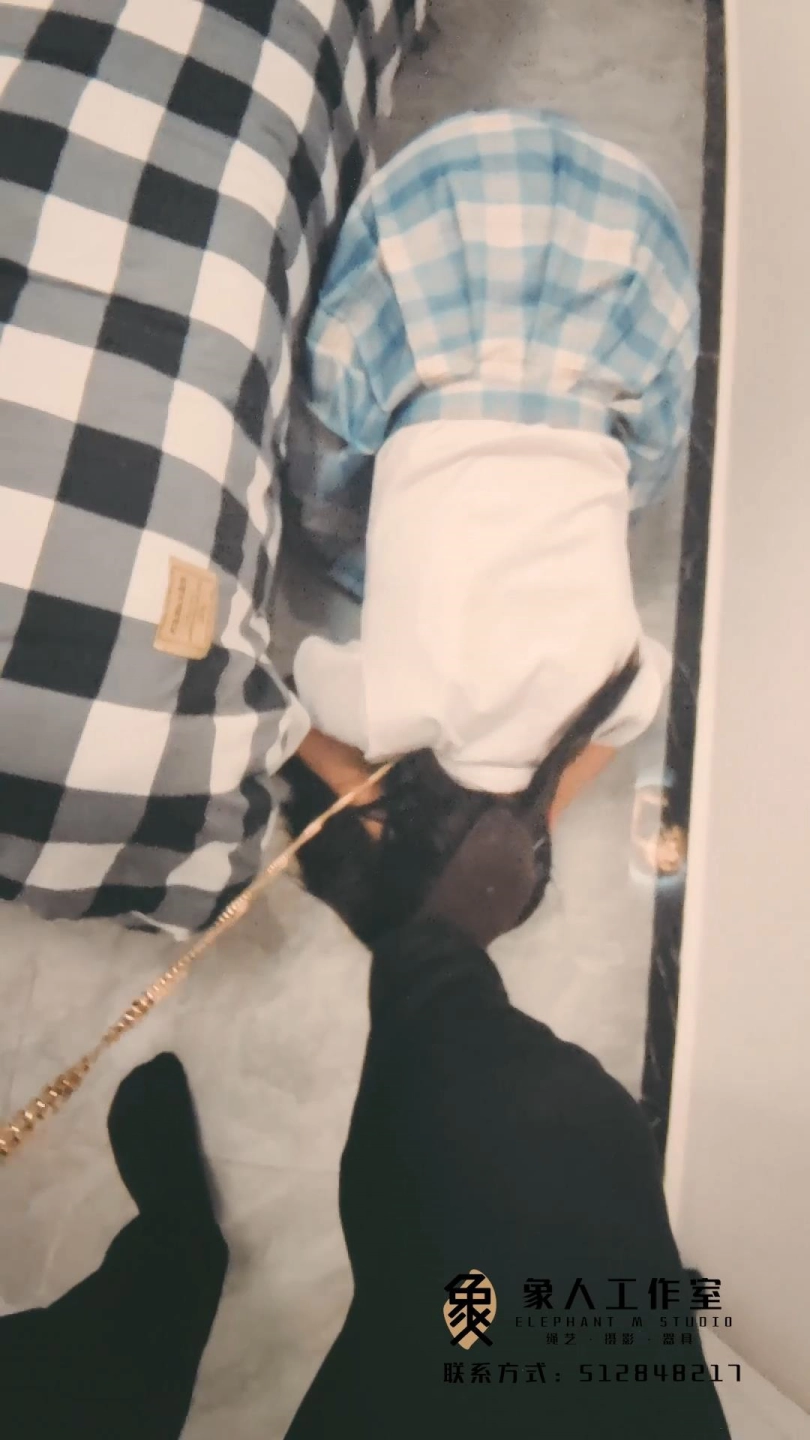 主人回到家,小鹿戴着项圈跪在地上欢迎主人,见到主人,小鹿赶紧给主人磕头,并说到,欢迎主人。