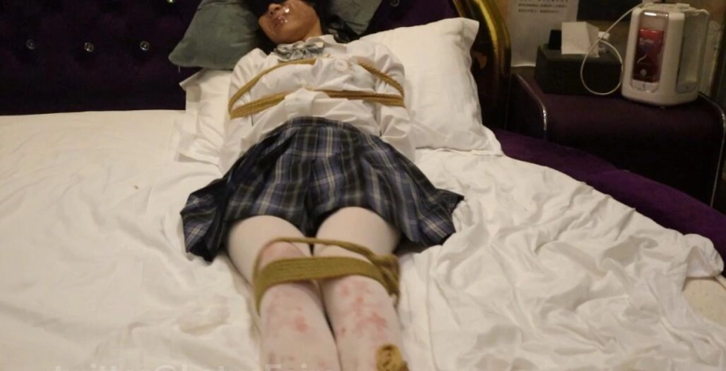 最后直接扔到床上,把女孩的嘴巴用胶带封好,开始新一轮的惩罚调教tk!!