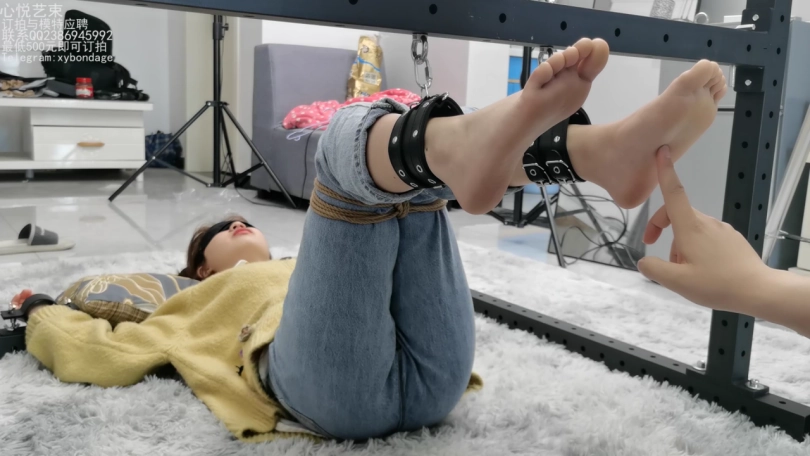 【心悦艺束】00后小萝莉文文拘束架完全拘束,吊脚TK揉凶