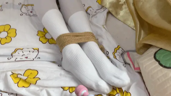 若灵小脚被高高的翘起来,疯狂的欺负,用[不可描述]一碰就躲开,最后还把[不可描述]直接压到了若灵的脚下,开始疯狂的挣扎,但是被绑着怎么也躲不开,若灵直接投降!塞上了半块棉袜只能发出呜呜呜的声音,继续欺负中ing(居然中途若灵靠挣扎居然挣开脚上的绳子)