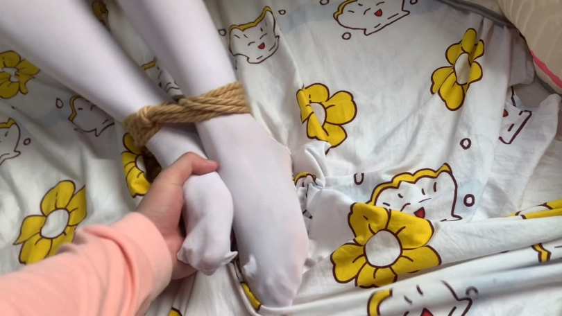 若灵真的超级敏感 一碰脚就被缩回去了 一开始只绑了上半身日式,想着挣扎的幅度会大很多,但实际上若灵很不老实,一碰就跑一碰就跑,还没开始挠就害怕了,楚楚可怜的说,不要闹了实在是太痒了,没办法就绑起来了,用了裸足 白丝和白丝白棉袜,由小哥哥帮若灵穿上的,很害羞qwq