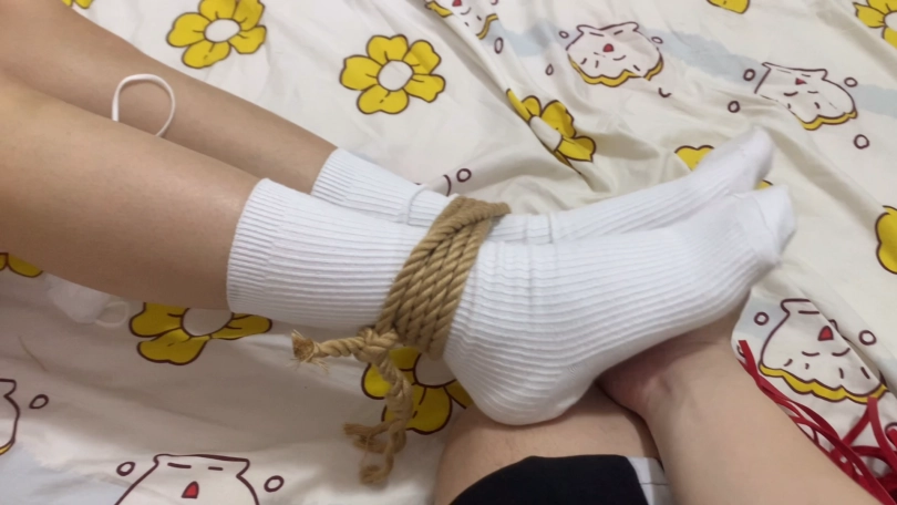 驷马稍绑一下,开始tk她的小白棉袜脚,脚倒是蛮小巧精致的