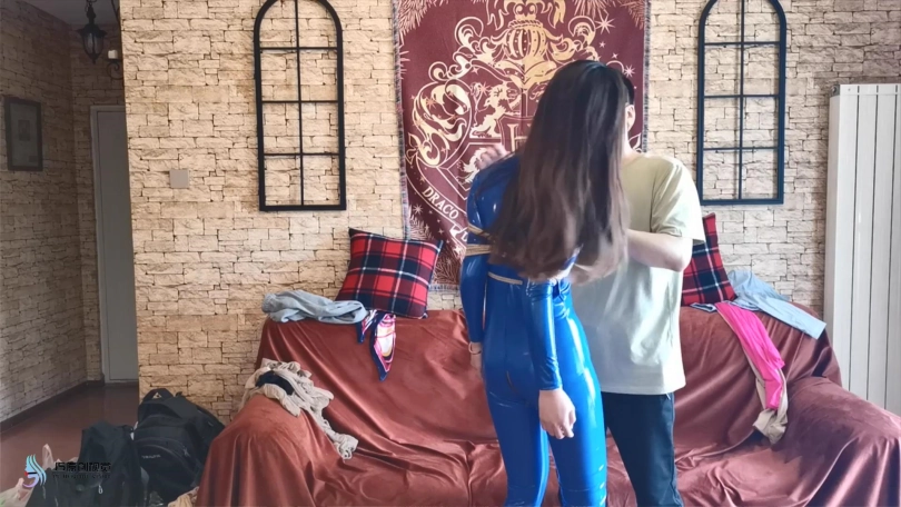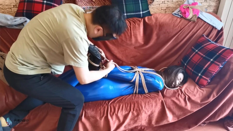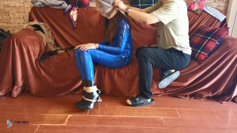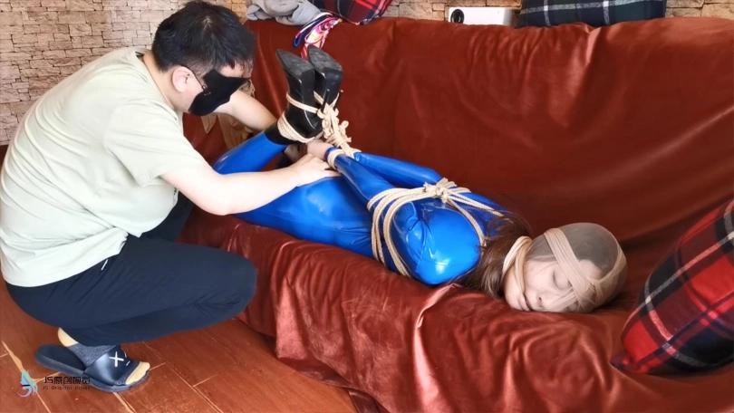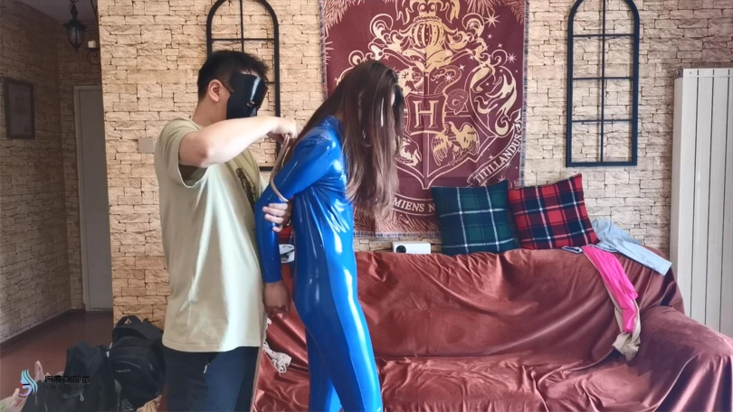 【JS】瑾萱 蓝色胶衣 欧式直臂捆绑 丝袜套头勒嘴 DD刺激
