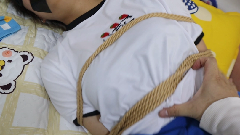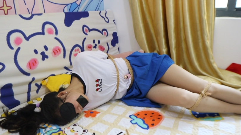 被一个男生摸进家门里,看到床上有一个正在睡觉的穿着睡衣的女孩子,一是心起,打算先把这个女孩子绑起来一开始先在她的嘴里塞上丝袜,在嘴上贴上的胶带结果还没醒来,悄悄把这个睡梦中的女孩扶起来开始捆绑啦