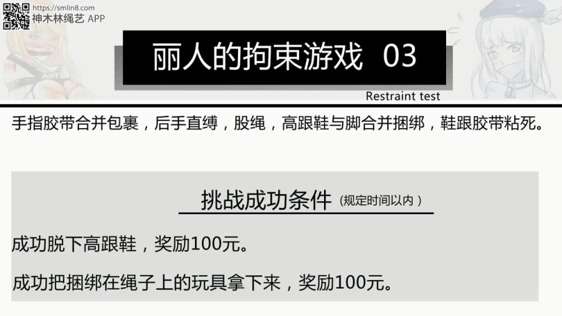 很明显灵感来自日本的紧缚实验,这个系列一开始非常有趣,但是长期的解缚太过单调,于是自己有了灵感,如果让美女被用奇特的方法捆绑,然后来完成各种游戏是不是会更有趣,于是带着这种想法制作出了中国版的紧缚试验,但内核做了改变,如果喜欢的请支持一下~如果喜欢这种玩法的也可以留言!