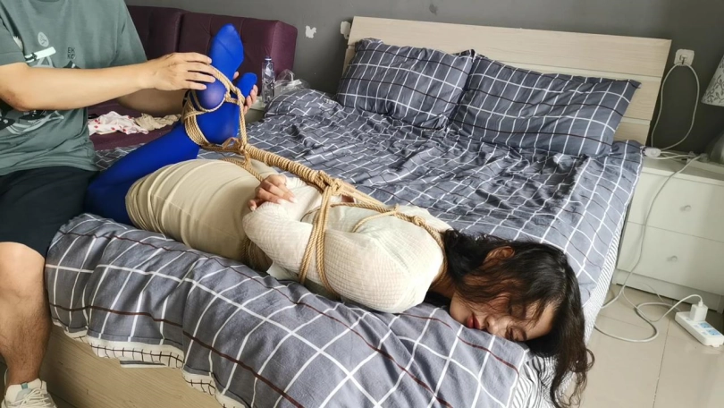【JS】艾可 性感蓝丝袜 龟甲紧缚 驷马挣扎