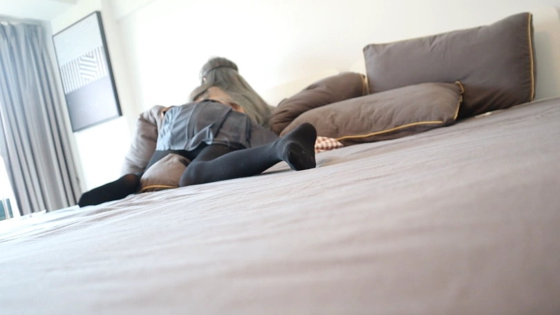 后来直接扔在床上,一开始这个小渣女自己在这里玩的还挺开心,后面就开始捆绑樱岛麻衣学姐