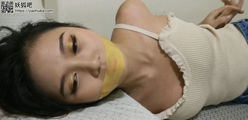 缪缪被扎带反绑手脚,黄色胶带透明胶带轮流封嘴,各种角度挣扎,喜欢胶带的不要错过