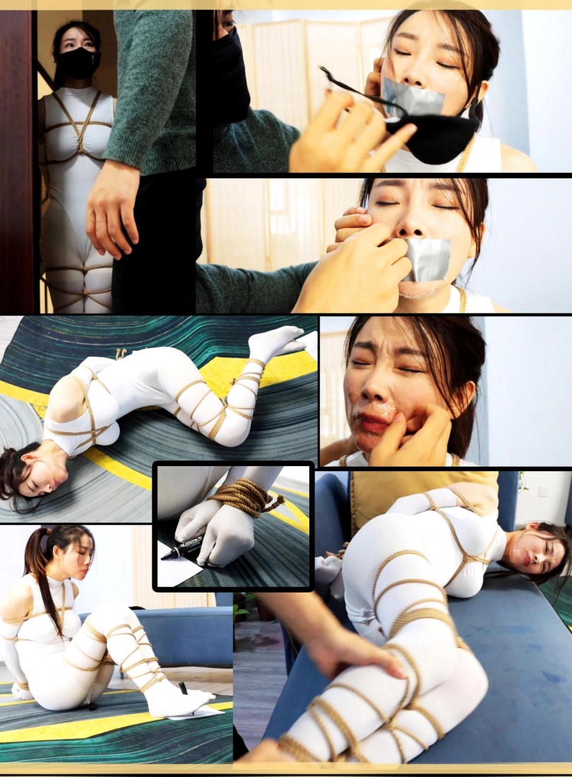 【得意客】《开门遇上密集捆绑神秘白丝御姐还不给解缚》双层白丝连指手套 双层白丝裤袜 白丝紧身衣 密集捆绑多重堵嘴 奇怪白丝御姐