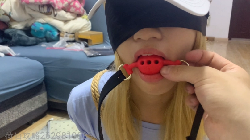 顺从的带上饱满的红色口球的棉袜女孩,(专门找了黄头发的女孩子