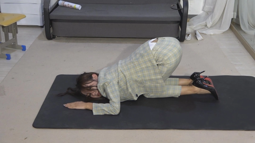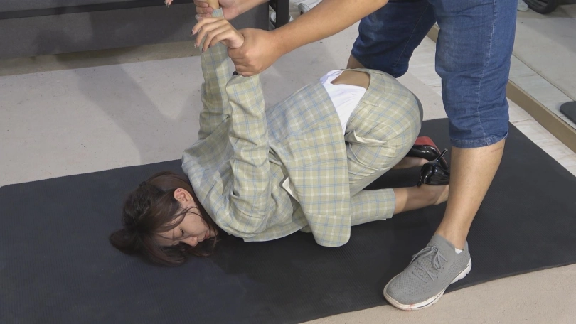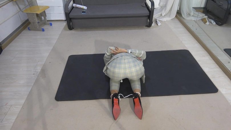 大学生美女然然,穿上西服显得多一分成熟与干练。反扭,押解,手铐,脚铐,扎带,押解绑,五花大绑,驷马挣扎等元素。