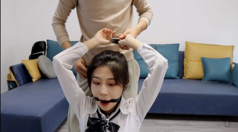 亮点元素:JK装米娅反差演绎+口球口水元素+白棉袜自脱自堵+驷马挣扎+脑后手铐拇指铐+铁链脚镣牵引+轻微小反转(倒也算不上反转