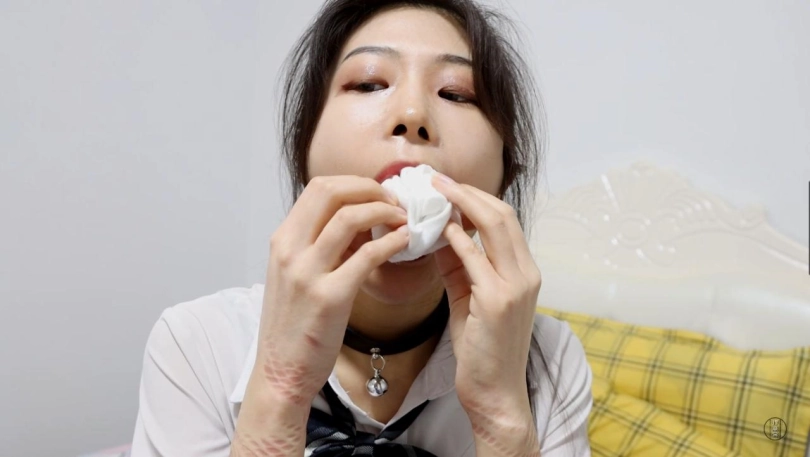 回到卧室,主人要将她放置play,米娅很喜欢放置play,所以她非常配合的将鞋子脱掉,将刚才走路浸入脚汗的白棉袜脱下来,在主人的注视下塞满小嘴,她的学习能力非常棒,她清楚主人不希望她以任何程度的自由来应对这场放置play。